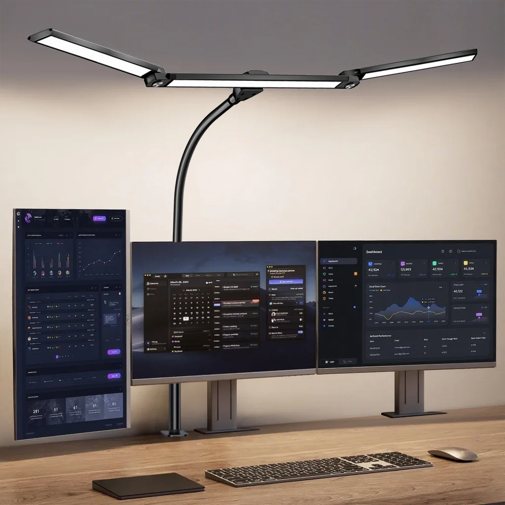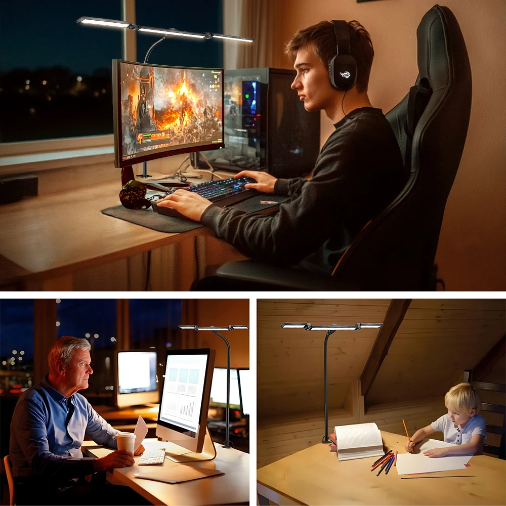 16W LED Desk Lamp for Office Eye-Caring Desk Light with Stepless Dimming Adjustable Flexible Gooseneck 3 Head Foldable Desk Lamp
