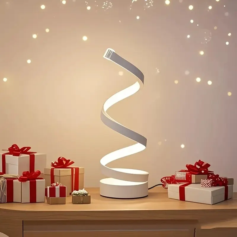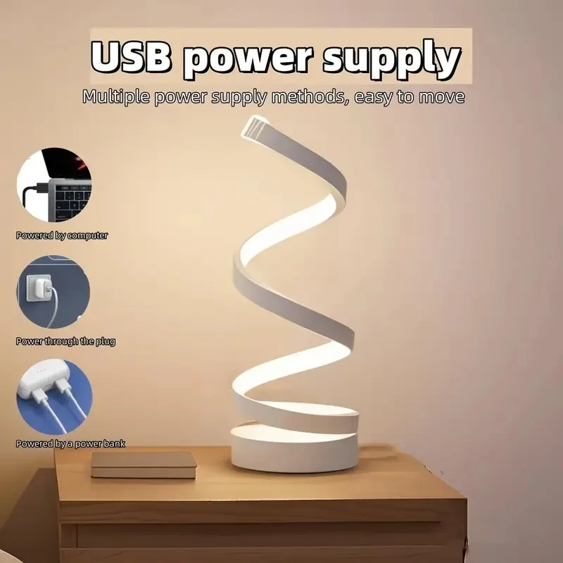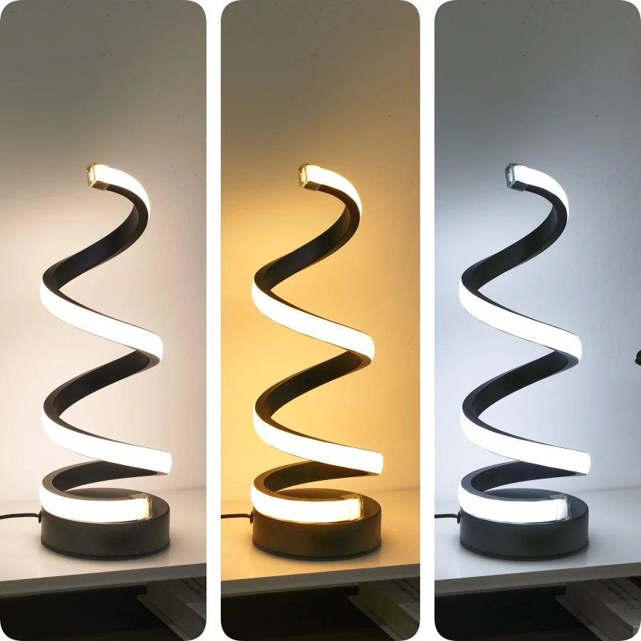 The Huananlong desk lamp features a sleek modern style, enhancing any desk's aesthetic with its spiral external emitting design.