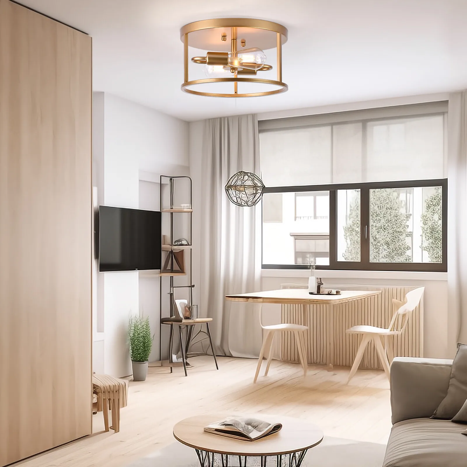 Crafted from high-quality materials, this ceiling light boasts a sturdy metal frame with a golden finish that complements any decoration, creating a warm and inviting ambiance. Easy to install, the 2-light ceiling light is perfect for use in entryways, living rooms, bedrooms, and dining rooms.