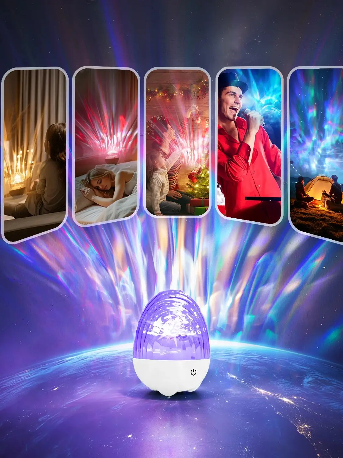 2-in-1 Music Player & Nebula Projector Desk Lamp - Dinosaur Egg Design Colorful LED Light Show With Water Ripple Effect, Remote
