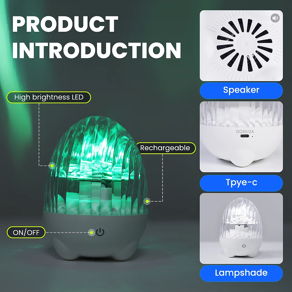 2-in-1 Music Player & Nebula Projector Desk Lamp - Dinosaur Egg Design Colorful LED Light Show With Water Ripple Effect, Remote | 1PCS / United States | $37.44