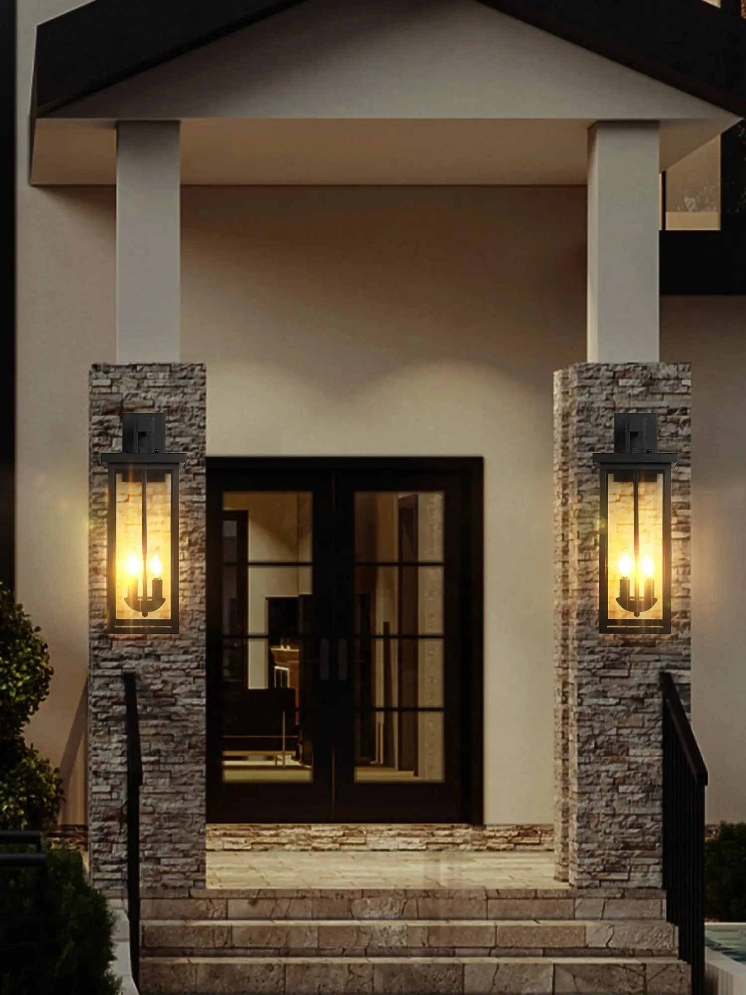 √Weather-resistant Wall Lanterns: Constructed with sturdy metal frame and thickened glass panel, our outdoor wall sconce is waterproof and durable enough to withstand any weather changes, from sun to snow, rain to ice. The high-quality metal effectively prevents the wall light from rust or corrosion to keep its stylish look for years of usage