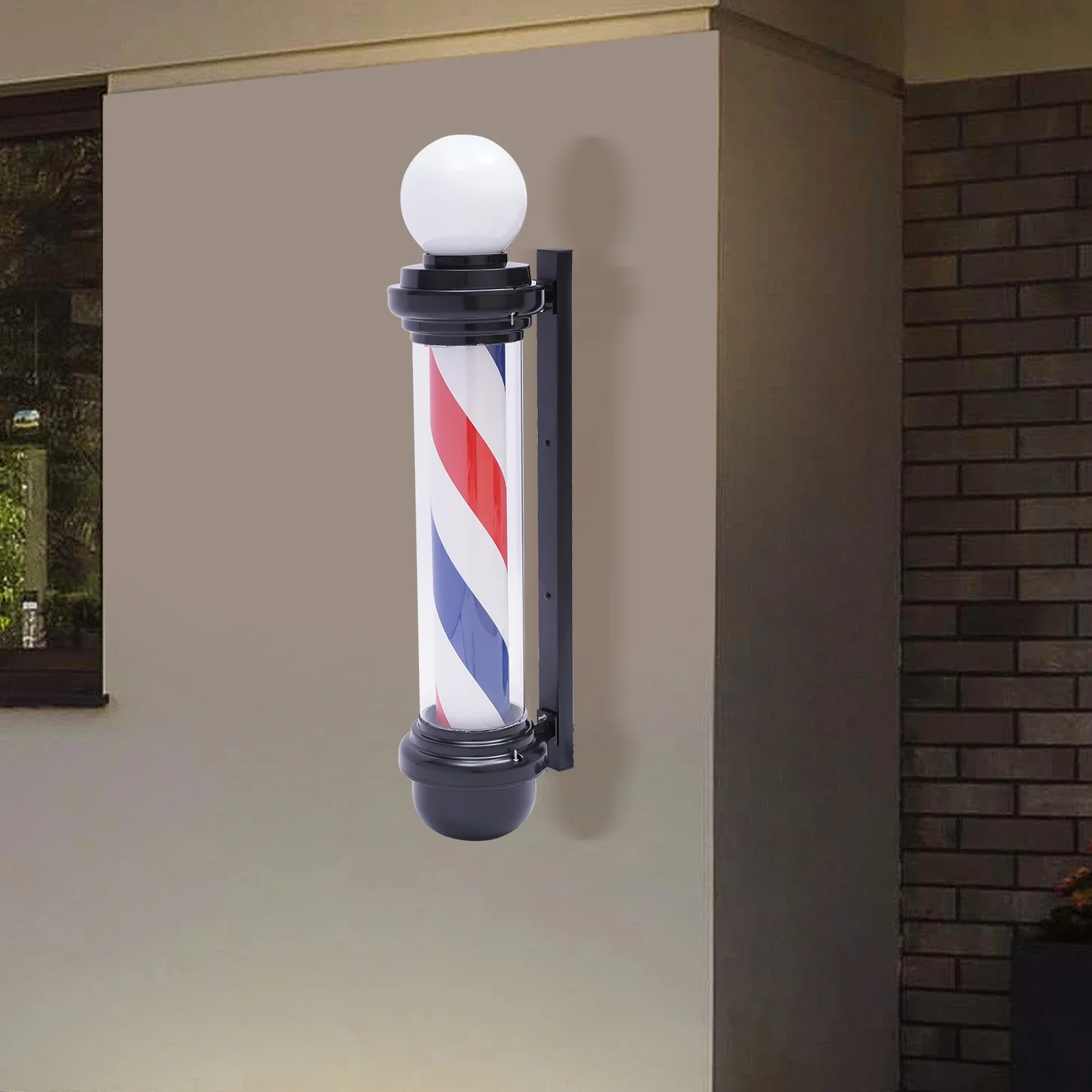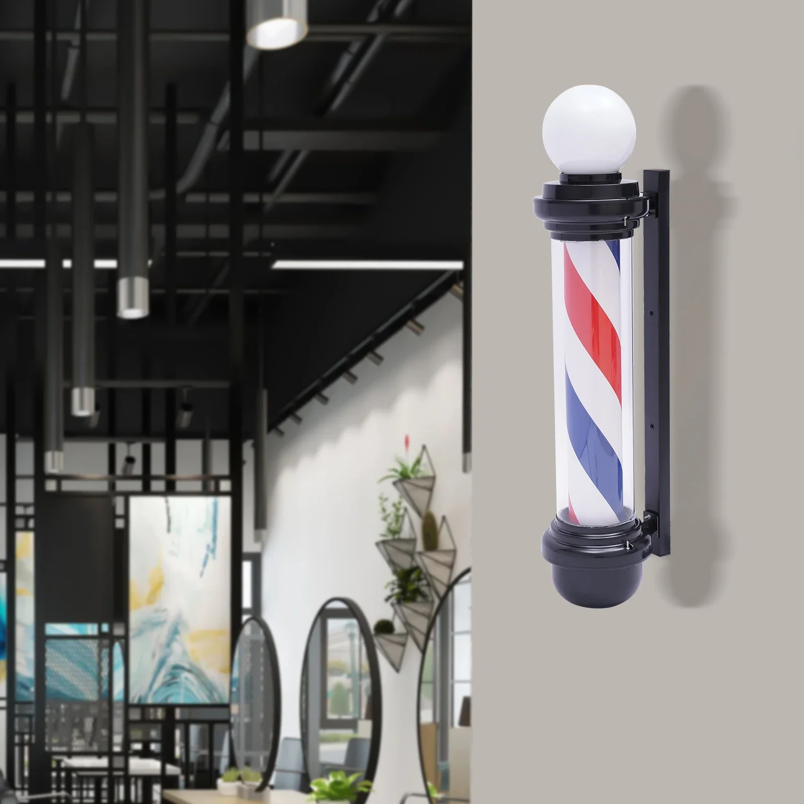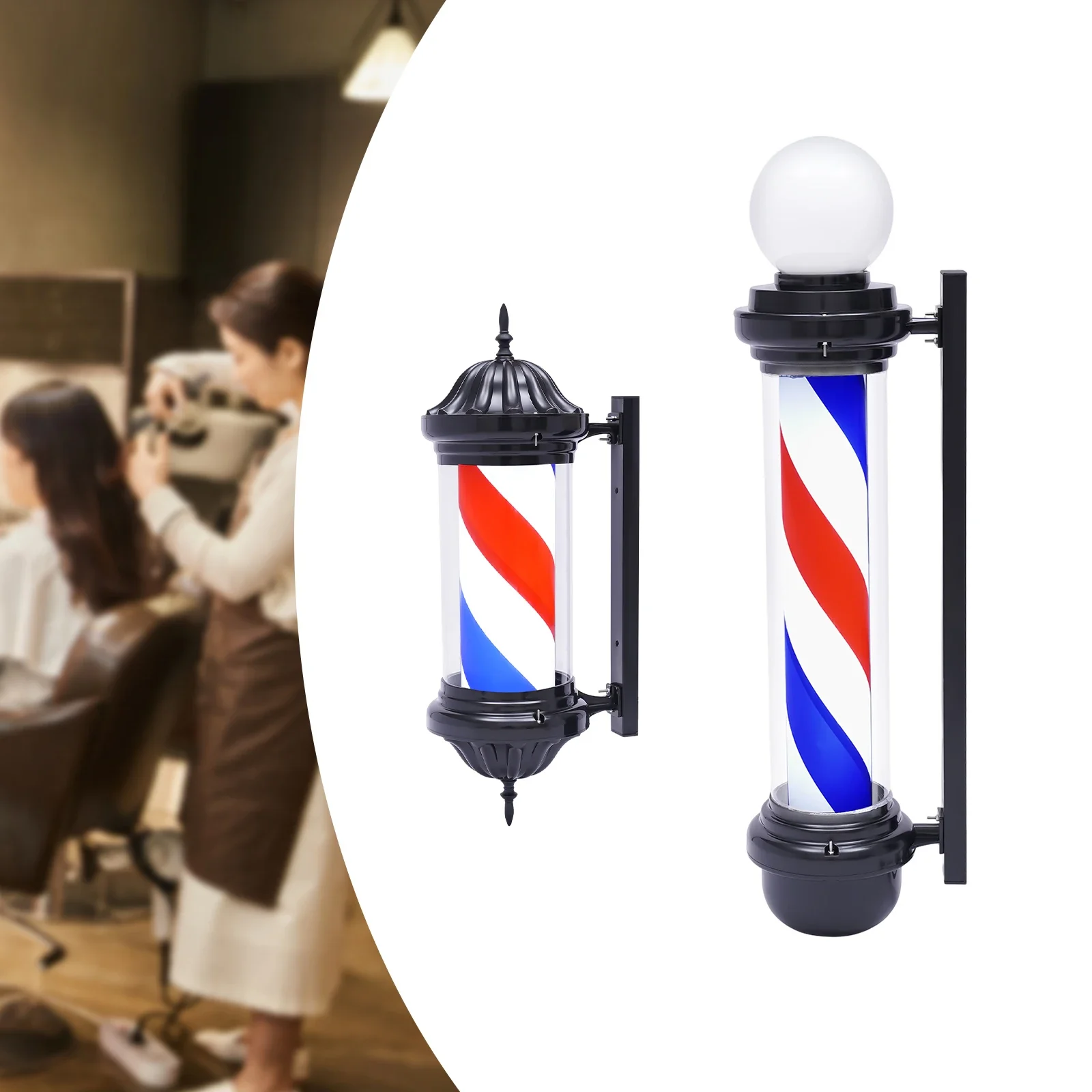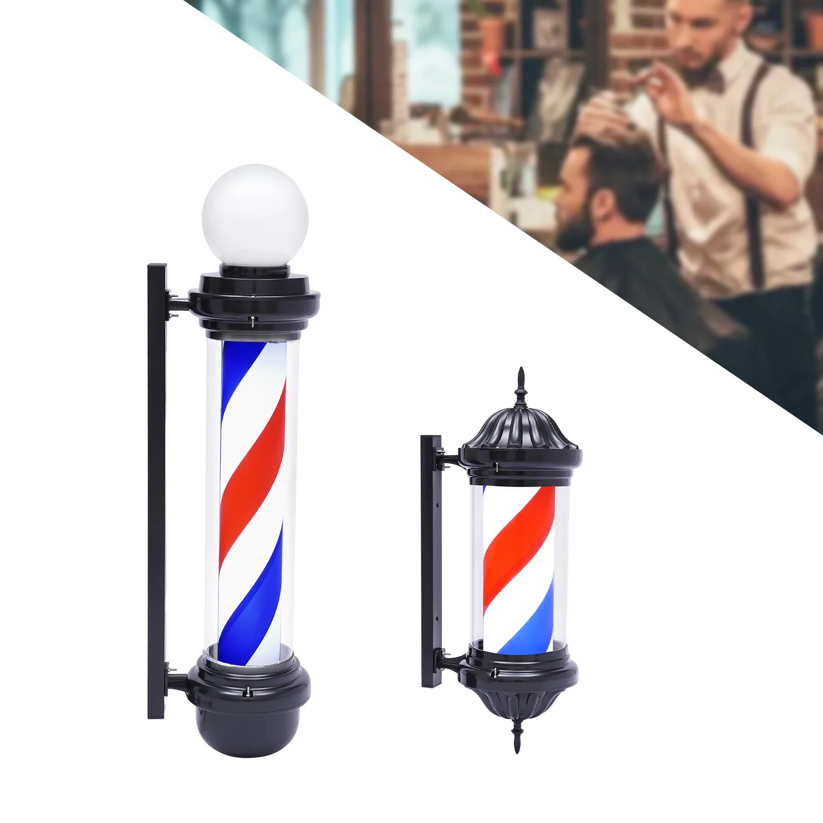 32inch Barber Pole Stripes With LED light Barber Pole Rotating Sign Light Box Rainproof Hairdressing Salon Save Energy Wall Lamp