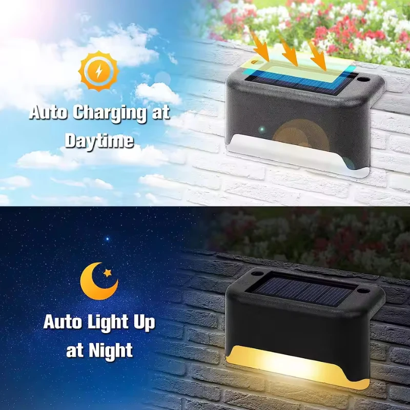 4/8/16Pcs Warm LED Solar Step Lamps Outdoor Waterproof Patio Light Deck Lamp for Railing Stairs Step Fence Yard Patio Pathway