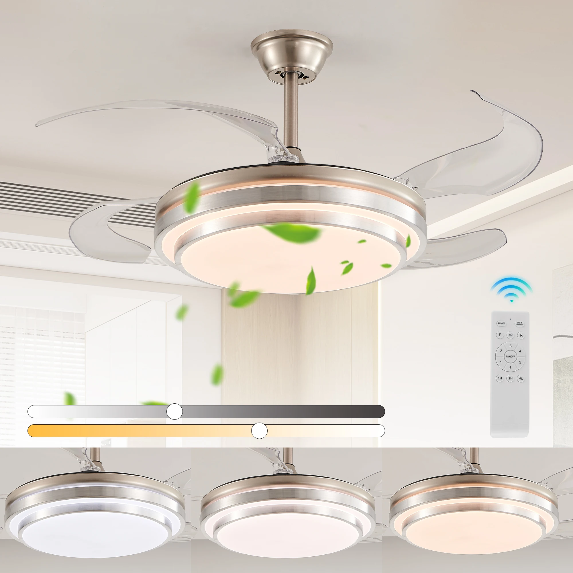 42 Inch 3 Layer Design Modern LED Ceiling Fan with Light and Remote Control,Retractable Blades,Adjustable Speed,Silent Operation