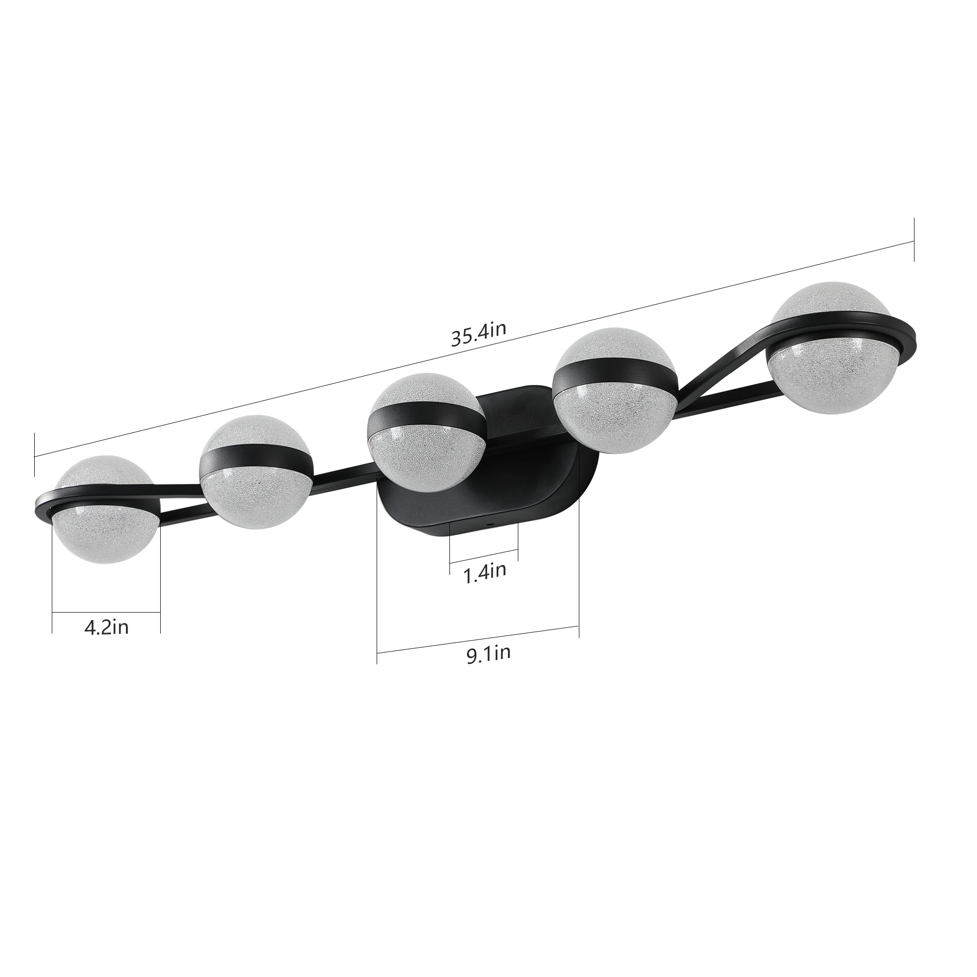 5-light modern led simple wall lamp scandinavian style black/gold frosted acrylic ball wall lamp living room bedroom corridor decorative lamp - 6000k cold white light