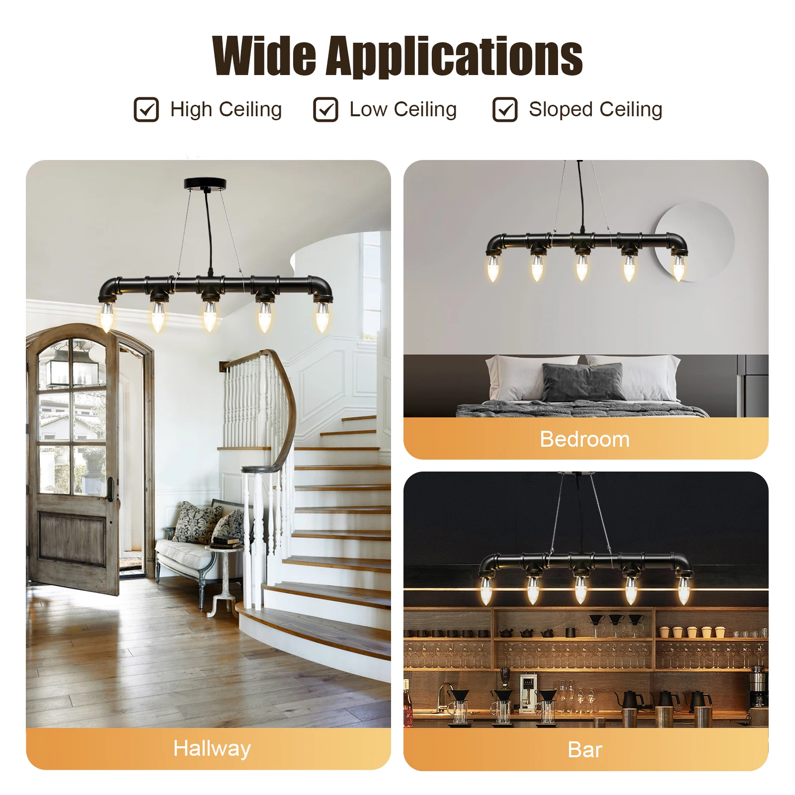 With a lighting area of 107.64-161.46ft², it is ideal for kitchens, hallways, kitchen islands, bedrooms, balconies, bars, aisles, foyers, hotels, corridors, cafes, dining rooms, billiard parlors, and other indoors. It can be installed on high, low, and sloped ceilings.