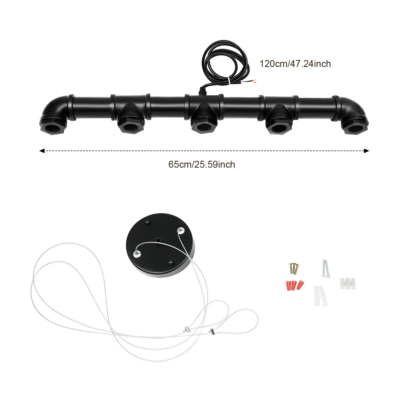 5-Light Water Pipe Pendant Light 65cm 1.2m Wire 10-15㎡ Lighting Area Ceiling Lamp for Living Room Bar Hotel Industrial Style