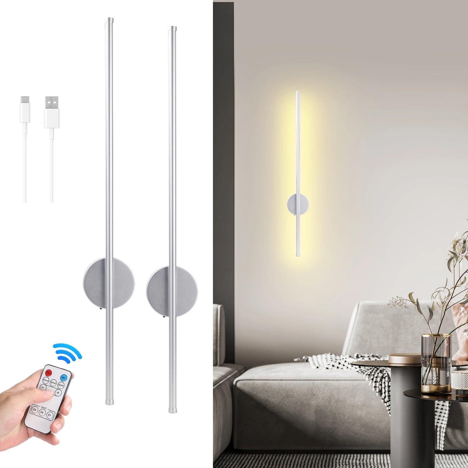 50cn/80cm LED Wireless Wall Lamp 5V Usb Rechargeable Long Night Light with Remote Control Modern Simple Bedroom Bedside Lamp | gold 2pcs / 80cm | $157.34