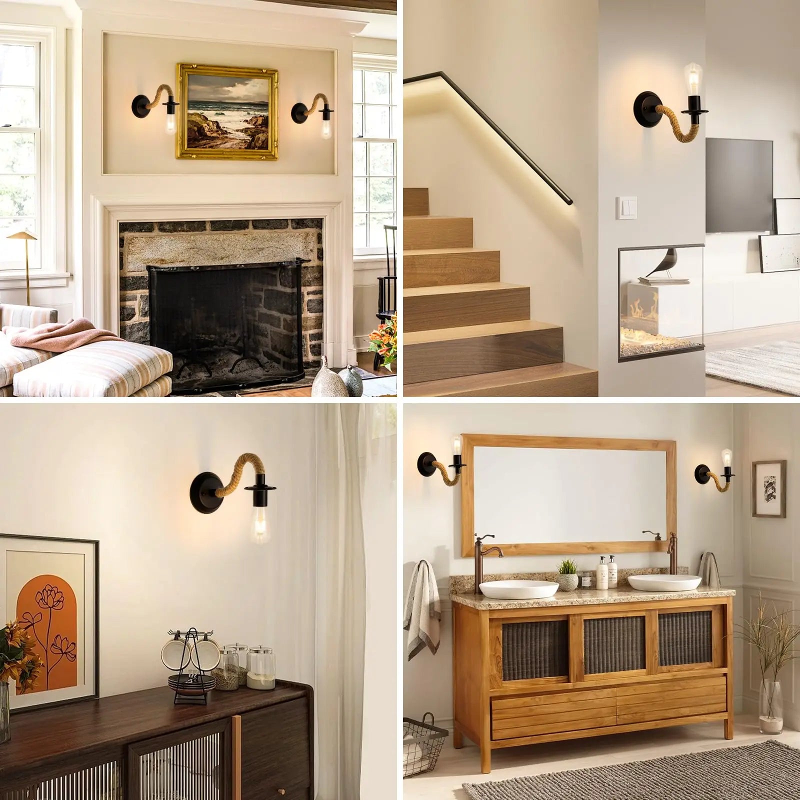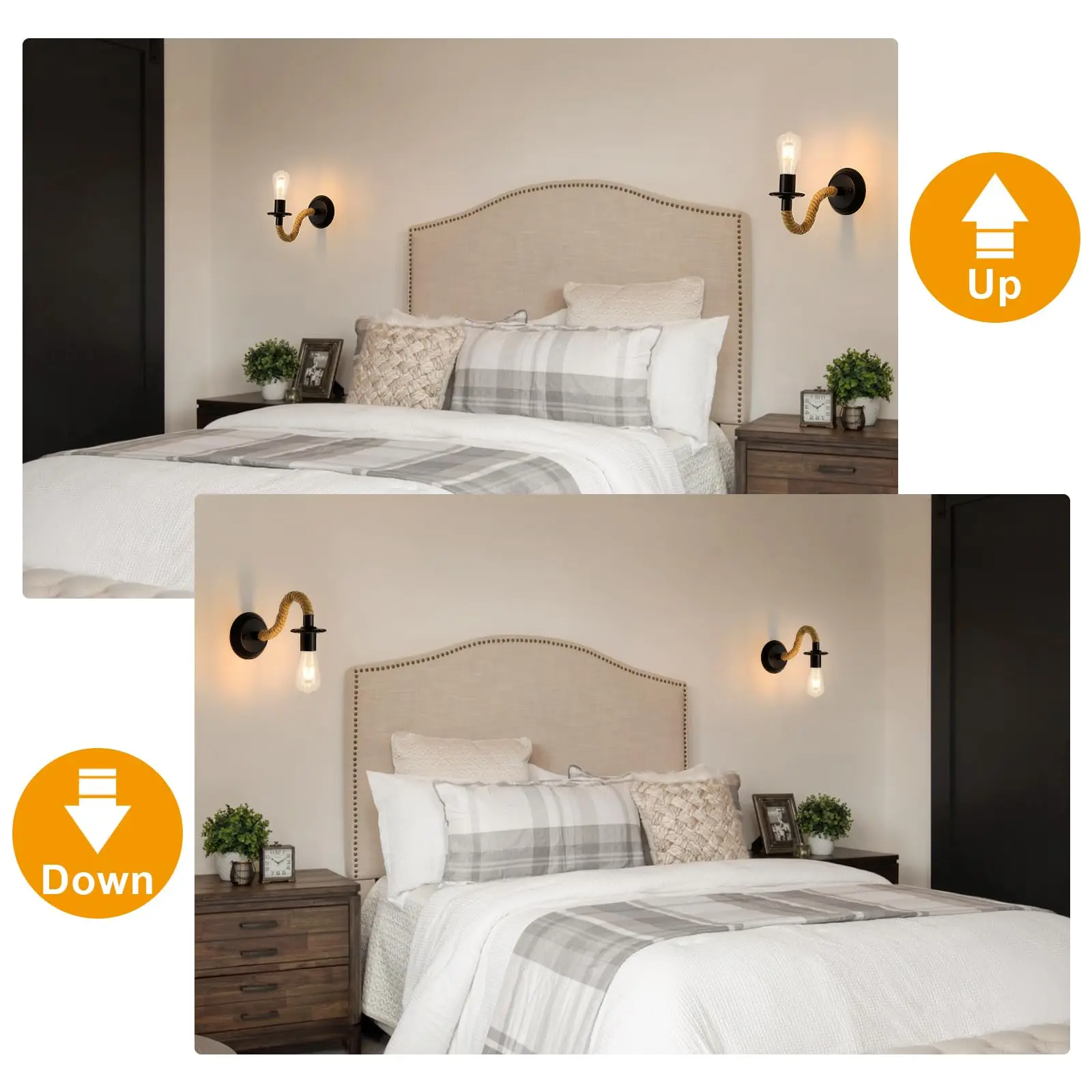 Black Wall Sconces Light, 2pcs Industrial Farmhouse Wall Light Fixtures E26 (Bulb Not Included) Vintage Wall Mount Light Fixture