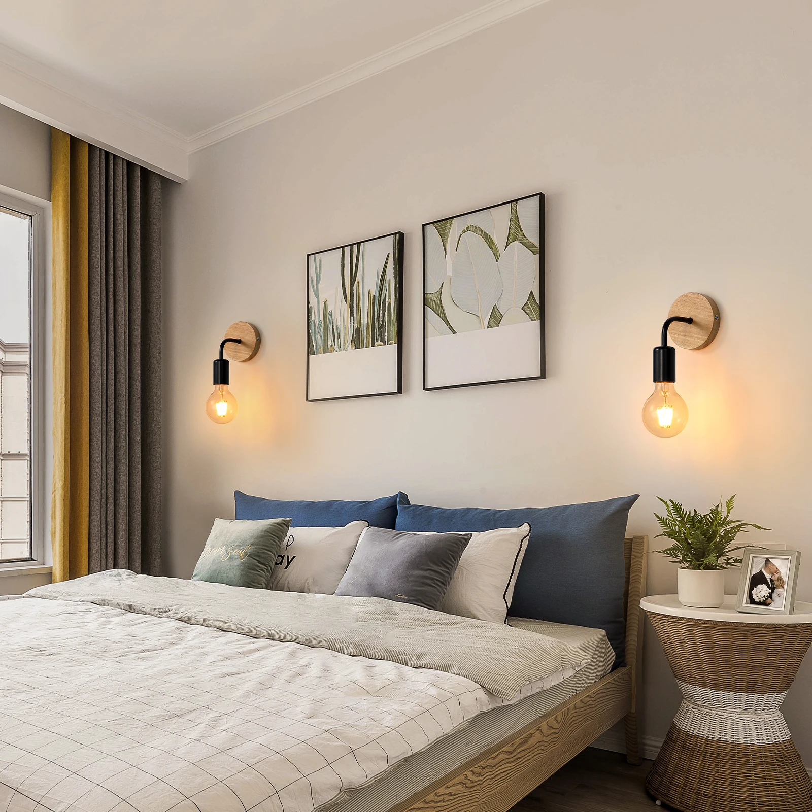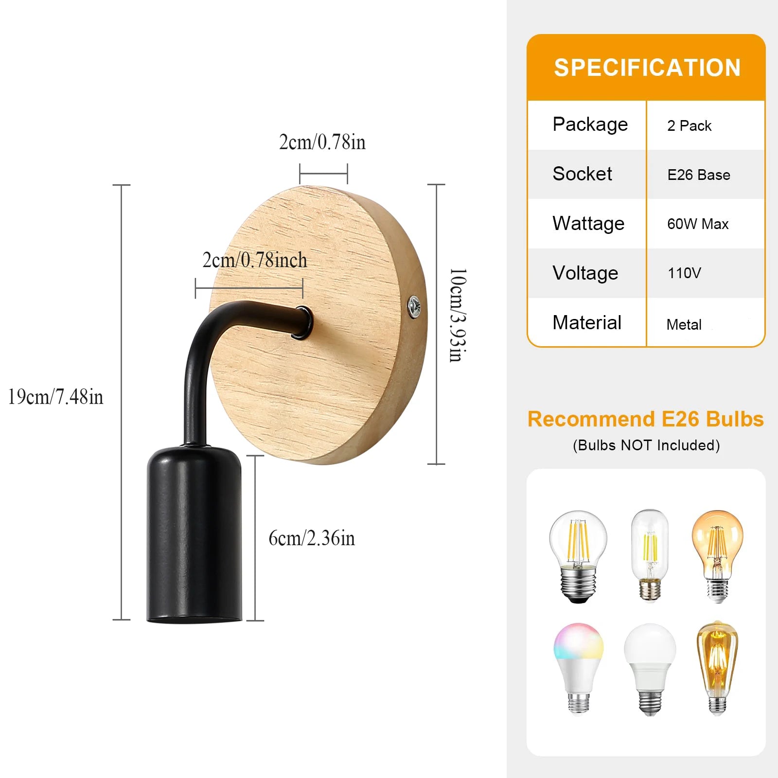 Black Wall Sconces Light, 2pcs Industrial Farmhouse Wall Light Fixtures, E26 (Bulb Not Included) Vintage Wall Mount Light Fixture, Hardwired