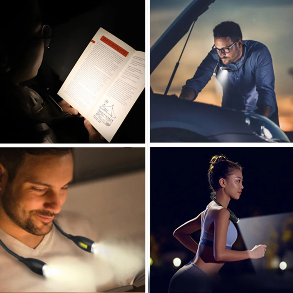 ![]() ![]() LED Neck Reading Light Bendable Arms Reading Lamp Adjustable Brightness LED Night Light Rechargeable for Night Running Walking Knitting Camping Feature: