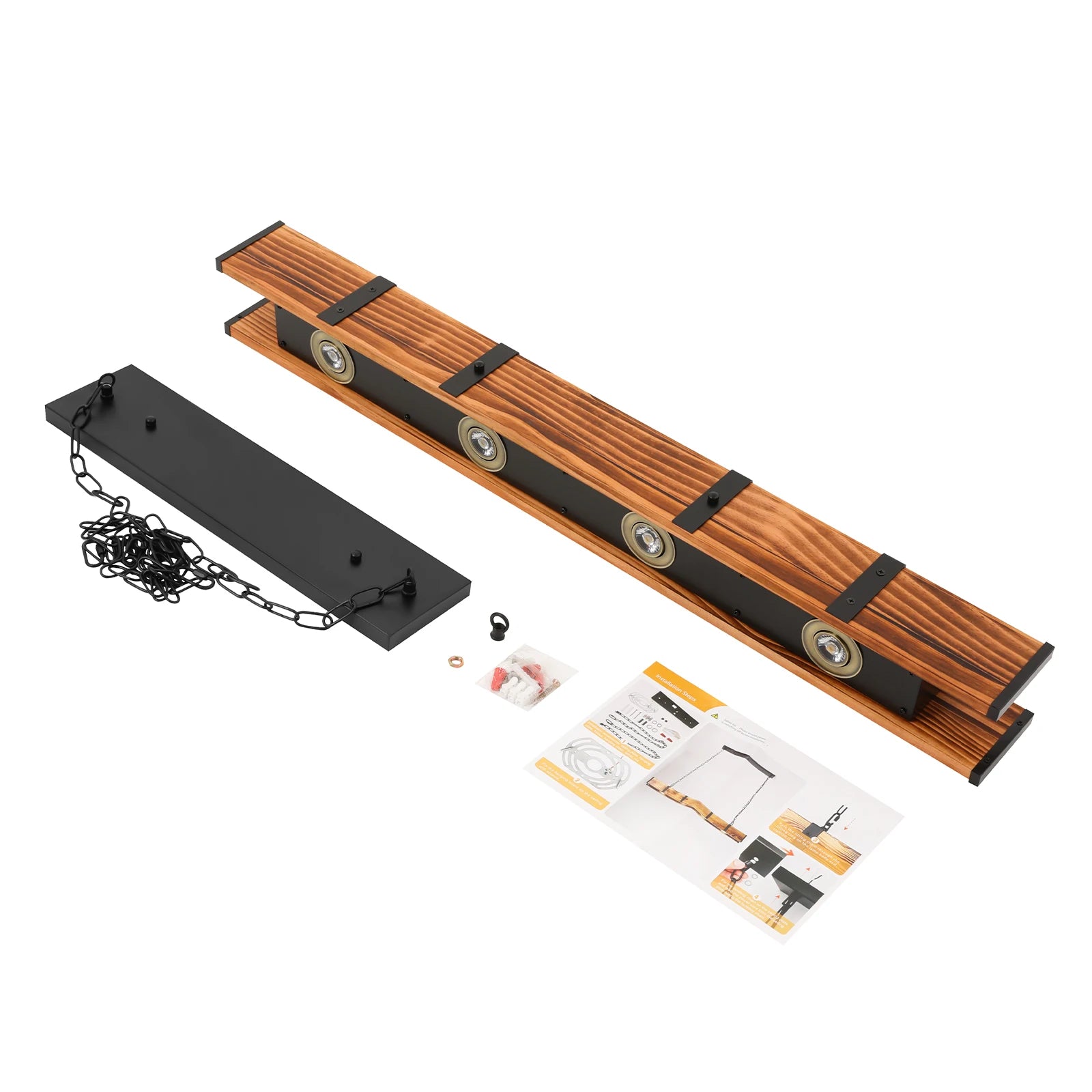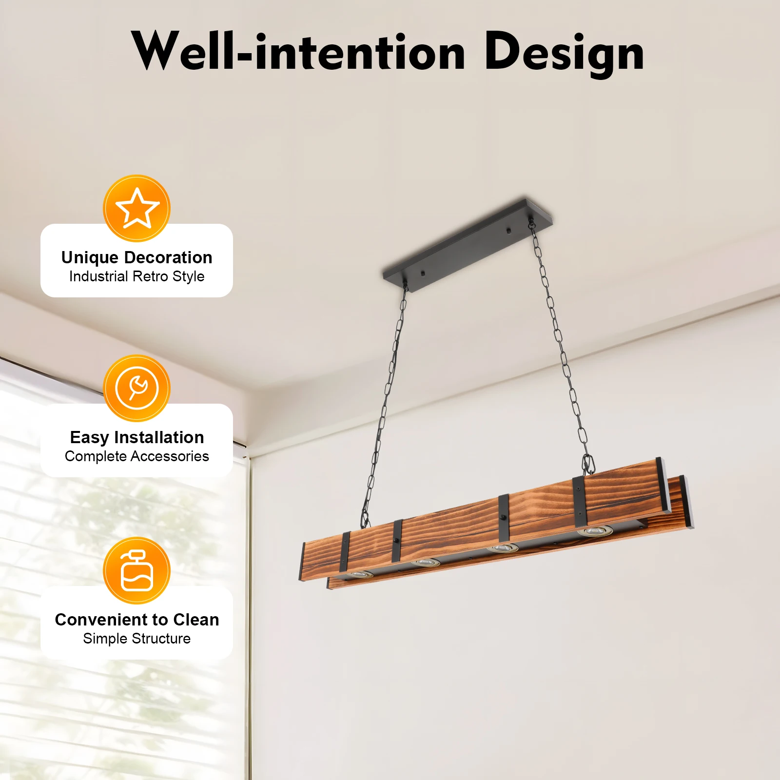 1. This exquisite pendant light is made of premium iron and solid wood, and treated with a baking paint process, which is rust-resistant, scratch-resistant, corrosion-resistant, and sturdy, ensuring a long service life.