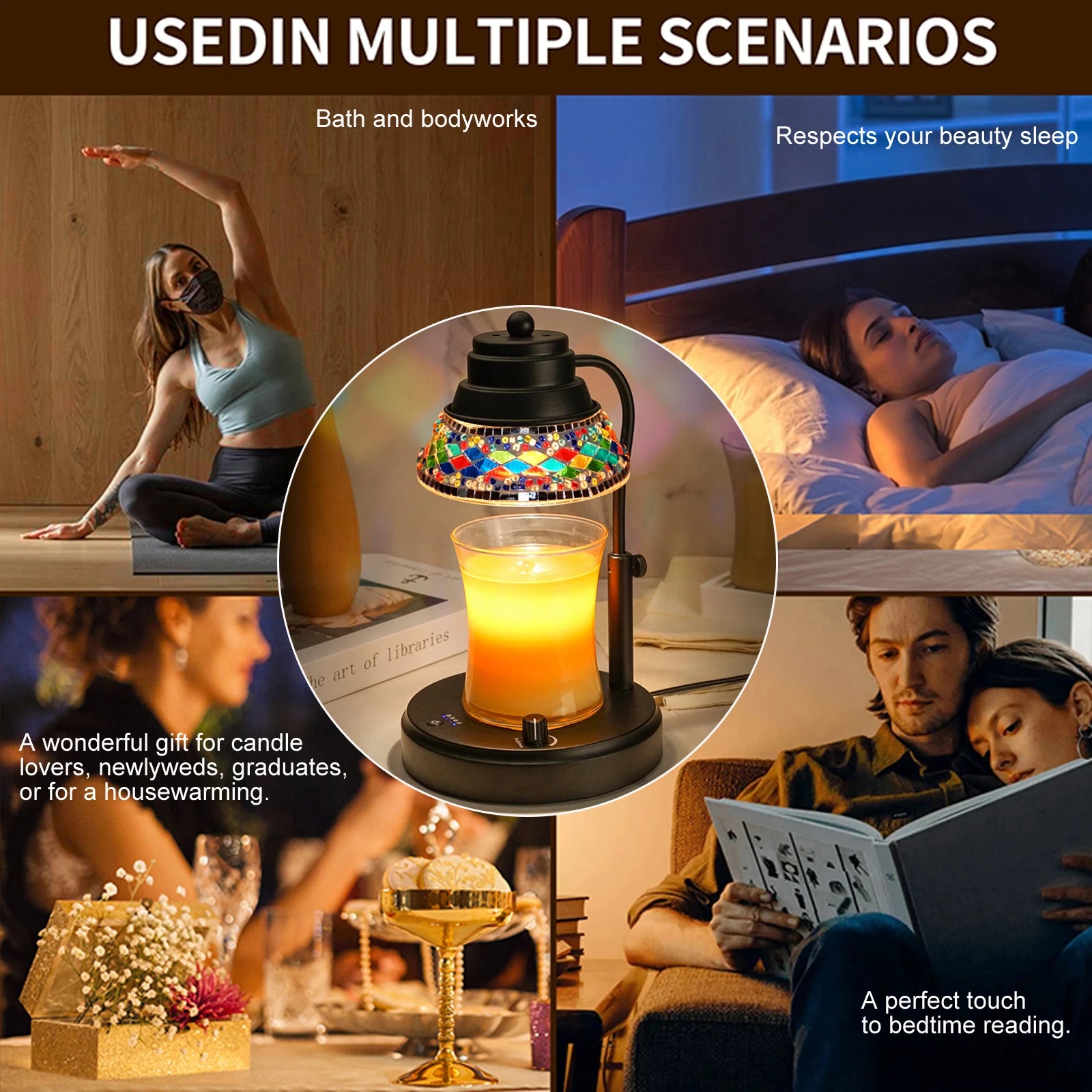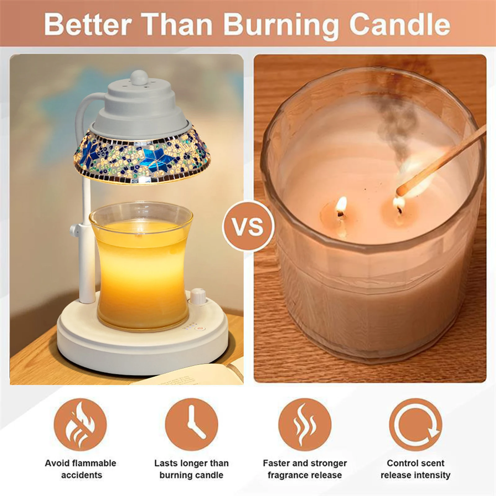 Colorful Candle Warmer Lamp With Timer and Dimmer Diamond Lampshape Wax Melting Lamp Adjustable Height Lattern Home Decor Gift